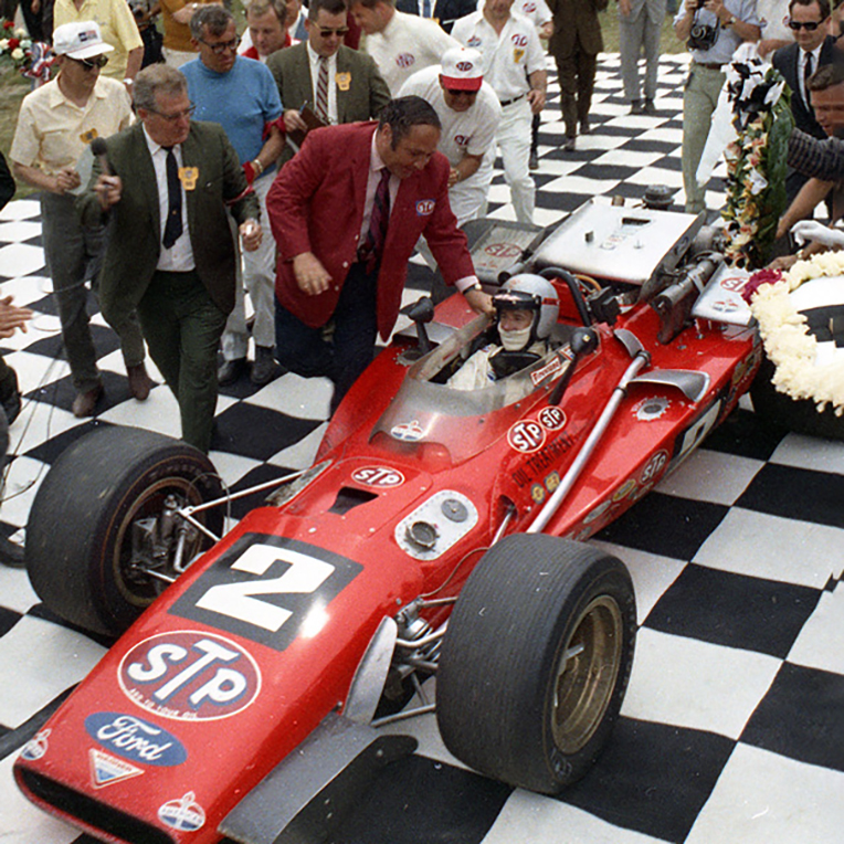 Mario Andretti wins the Indy 500 – the last driver to win the 500 in an open face helmet.